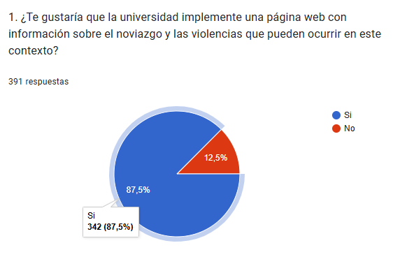 Al 87.5% del estudiantado les interesa la implementación de una página web con información sobre la violencia en el noviazgo, a través de tecnologías digitales como páginas web, redes sociales y aplicaciones. También consideran importante la creación de medidas de prevención sobre el tema;