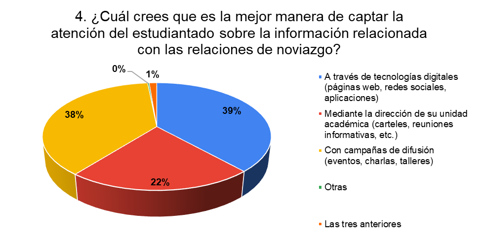 Esta información llevó a la conclusión de la necesidad de implementar una medida de difusión sobre la violencia en el noviazgo, destacando la importancia de proporcionar esta información de manera accesible y efectiva, idéntica;